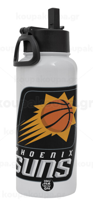 Phoenix Suns, Metal mug thermo White with Straw and Spout Lid (Stainless steel), double wall, 950ml
