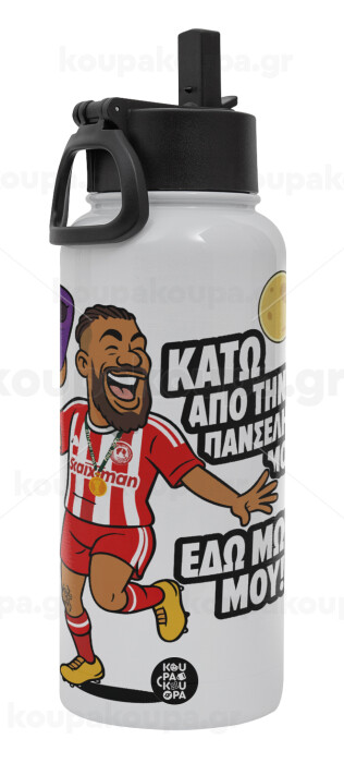 Ροντινέι, "ΚΑΤΩ ΑΠΟ ΤΗΝ ΠΑΝΣΕΛΗΝΟ ΜΟΥ!", Metal mug thermo White with Straw and Spout Lid (Stainless steel), double wall, 950ml