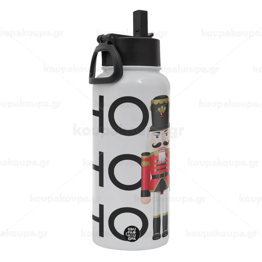 Nutcracker, Metal mug thermo White with Straw and Spout Lid (Stainless steel), double wall, 950ml