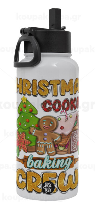 Christmas Cookie Baking Crew, Metal mug thermo White with Straw and Spout Lid (Stainless steel), double wall, 950ml