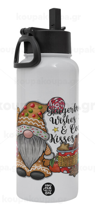 Gingerbread Wishes, Metal mug thermo White with Straw and Spout Lid (Stainless steel), double wall, 950ml