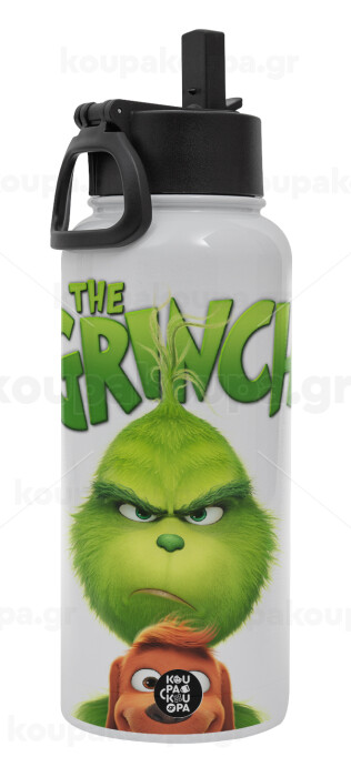 mr grinch, Metal mug thermo White with Straw and Spout Lid (Stainless steel), double wall, 950ml