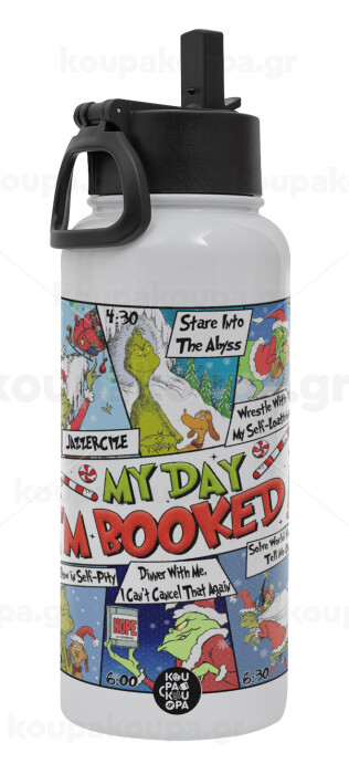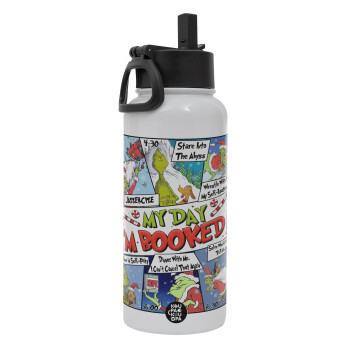 My Day Grinch, Metal mug thermo White with Straw and Spout Lid (Stainless steel), double wall, 950ml