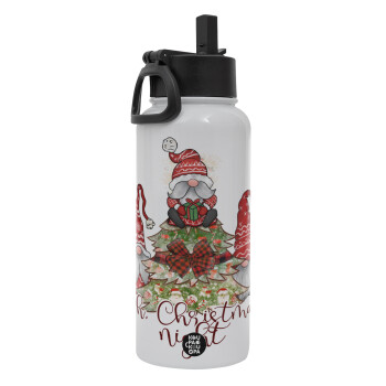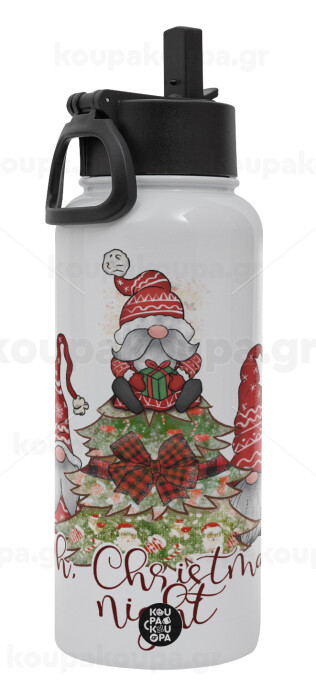 Oh Christmas Night, Metal mug thermo White with Straw and Spout Lid (Stainless steel), double wall, 950ml