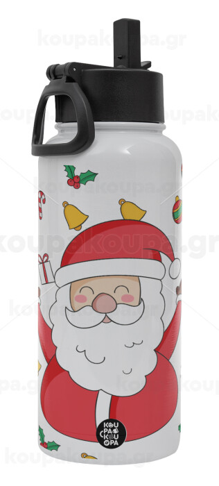 Santa Claus gifts, Metal mug thermo White with Straw and Spout Lid (Stainless steel), double wall, 950ml