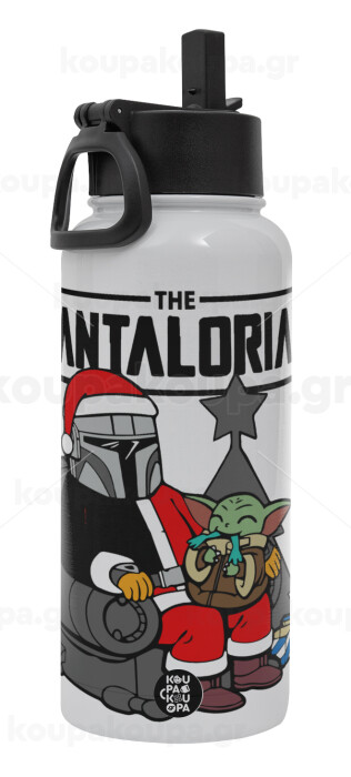 Star Wars Santalorian, Metal mug thermo White with Straw and Spout Lid (Stainless steel), double wall, 950ml