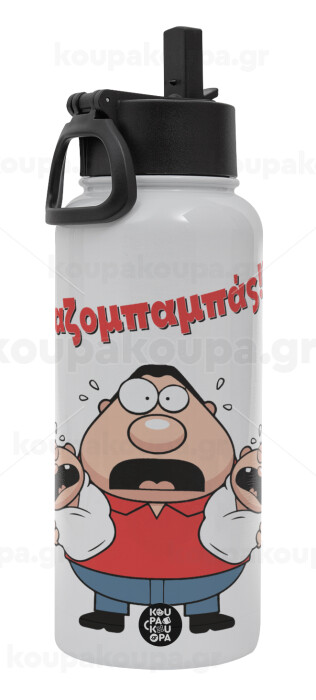 Χαζομπαμπάς σε απόγνωση, Metal mug thermo White with Straw and Spout Lid (Stainless steel), double wall, 950ml