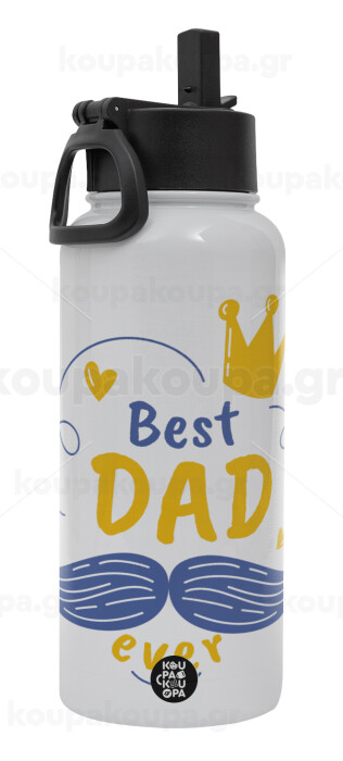 Best dad ever ο Βασιλιάς, Metal mug thermo White with Straw and Spout Lid (Stainless steel), double wall, 950ml