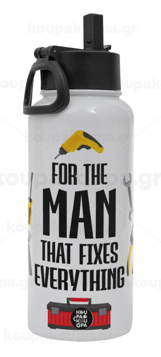 For the man that fixes everything!, Metal mug thermo White with Straw and Spout Lid (Stainless steel), double wall, 950ml