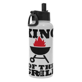 KING of the Grill, Metal mug thermo White with Straw and Spout Lid (Stainless steel), double wall, 950ml