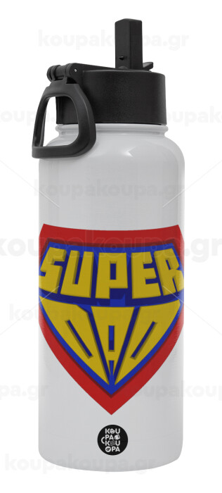 Super Dad 3D, Metal mug thermo White with Straw and Spout Lid (Stainless steel), double wall, 950ml