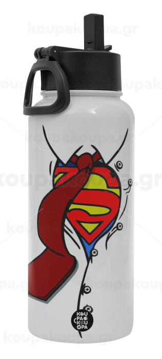 SuperDad, Metal mug thermo White with Straw and Spout Lid (Stainless steel), double wall, 950ml