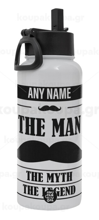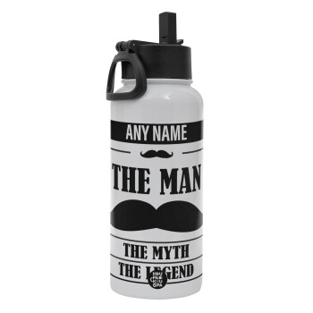The man, the myth, Metal mug thermo White with Straw and Spout Lid (Stainless steel), double wall, 950ml