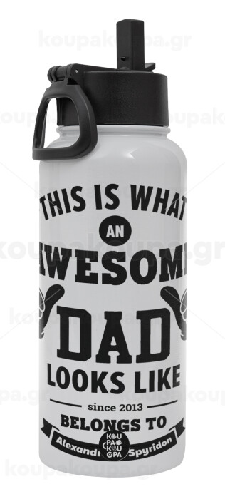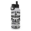 This is what an Awesome DAD looks like, Metal mug thermo White with Straw and Spout Lid (Stainless steel), double wall, 950ml