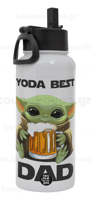 Yoda Best Dad, Metal mug thermo White with Straw and Spout Lid (Stainless steel), double wall, 950ml