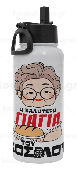 Η καλύτερη γιαγιά του κόσμου!, Metal mug thermo White with Straw and Spout Lid (Stainless steel), double wall, 950ml