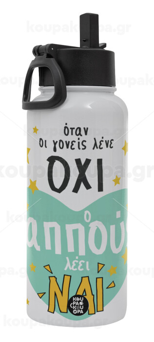 Όταν οι γονείς λένε ΟΧΙ, ο παππούς λέει ΝΑΙ, Metal mug thermo White with Straw and Spout Lid (Stainless steel), double wall, 950ml