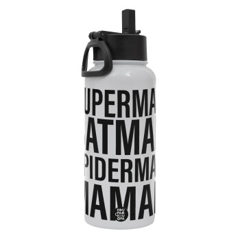 MAMAN, Metal mug thermo White with Straw and Spout Lid (Stainless steel), double wall, 950ml