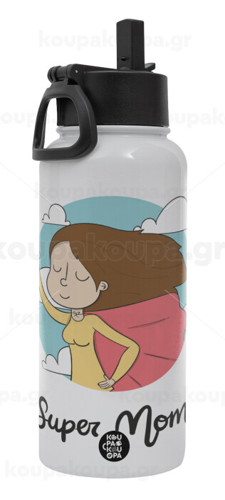 Super mom, Metal mug thermo White with Straw and Spout Lid (Stainless steel), double wall, 950ml