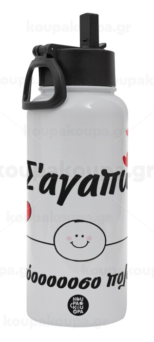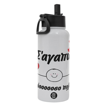 Σ΄αγαπώ τόοοοσο πολύ (Αγόρι)!!!, Metal mug thermo White with Straw and Spout Lid (Stainless steel), double wall, 950ml