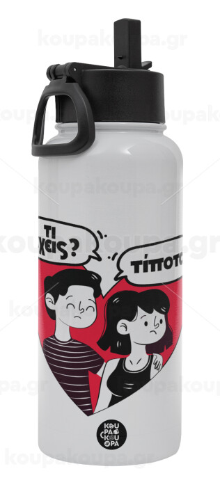 Τι έχεις? Τίποτα!, Metal mug thermo White with Straw and Spout Lid (Stainless steel), double wall, 950ml