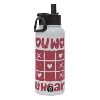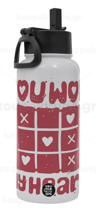 Τρίλιζα you won my heart, Metal mug thermo White with Straw and Spout Lid (Stainless steel), double wall, 950ml
