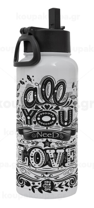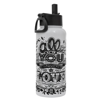 All you need is love, Metal mug thermo White with Straw and Spout Lid (Stainless steel), double wall, 950ml