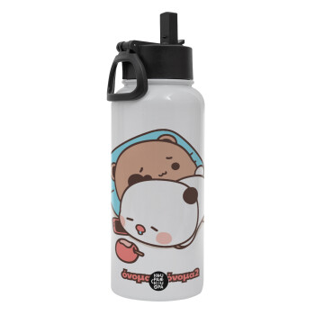 bubu + dudu, Metal mug thermo White with Straw and Spout Lid (Stainless steel), double wall, 950ml