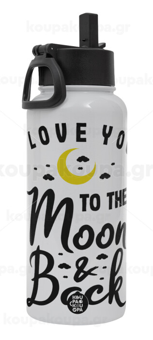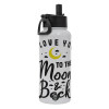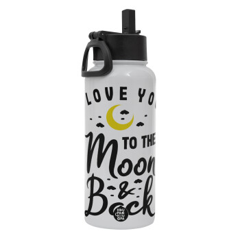 I love you to the moon and back, Metal mug thermo White with Straw and Spout Lid (Stainless steel), double wall, 950ml