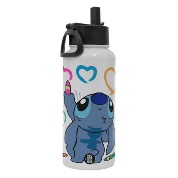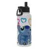 Lilo & Stitch painting, Metal mug thermo White with Straw and Spout Lid (Stainless steel), double wall, 950ml