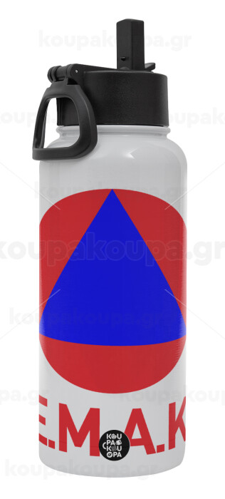 E.M.A.K., Metal mug thermo White with Straw and Spout Lid (Stainless steel), double wall, 950ml