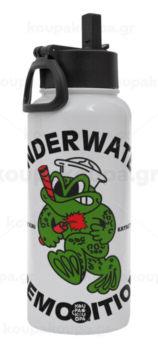 Underwater Demolition, Metal mug thermo White with Straw and Spout Lid (Stainless steel), double wall, 950ml