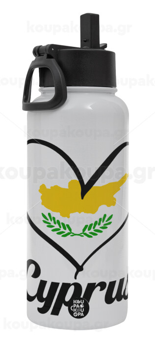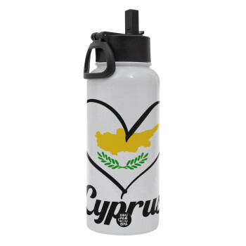 Cyprus flag, Metal mug thermo White with Straw and Spout Lid (Stainless steel), double wall, 950ml