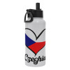 Czechia flag, Metal mug thermo White with Straw and Spout Lid (Stainless steel), double wall, 950ml