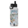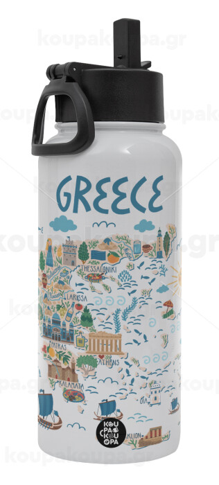 Greek map, Metal mug thermo White with Straw and Spout Lid (Stainless steel), double wall, 950ml