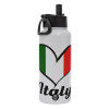 Italy flag, Metal mug thermo White with Straw and Spout Lid (Stainless steel), double wall, 950ml