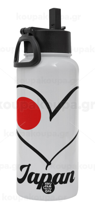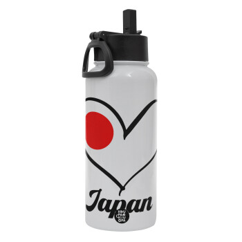Japan flag, Metal mug thermo White with Straw and Spout Lid (Stainless steel), double wall, 950ml