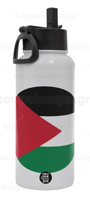 Palestine Flag, Metal mug thermo White with Straw and Spout Lid (Stainless steel), double wall, 950ml