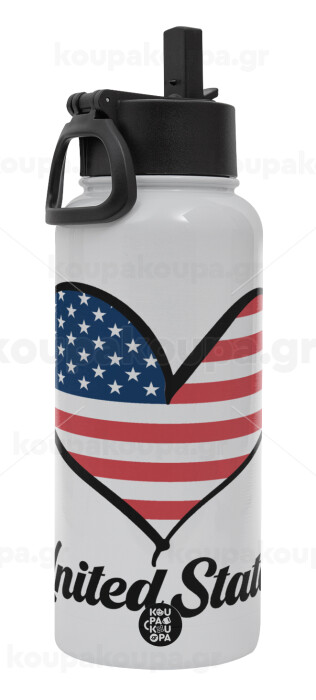 USA flag, Metal mug thermo White with Straw and Spout Lid (Stainless steel), double wall, 950ml