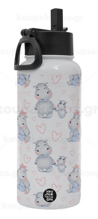 Hippo, Metal mug thermo White with Straw and Spout Lid (Stainless steel), double wall, 950ml