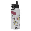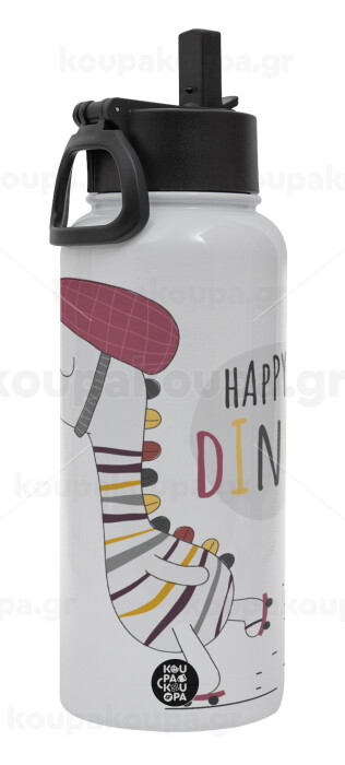 Happy Dino, Metal mug thermo White with Straw and Spout Lid (Stainless steel), double wall, 950ml