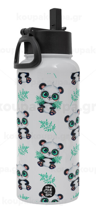 Panda, Metal mug thermo White with Straw and Spout Lid (Stainless steel), double wall, 950ml