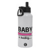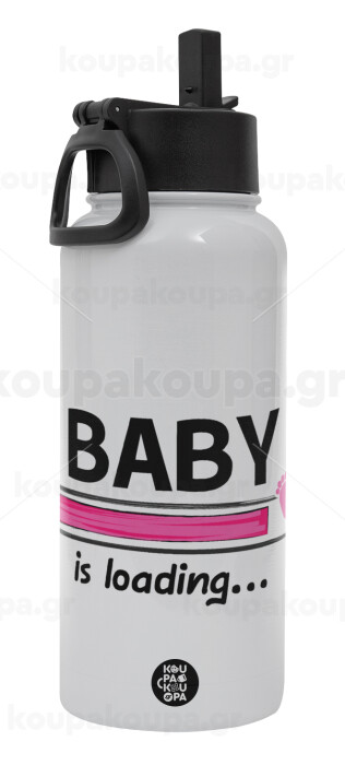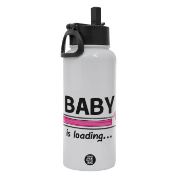 Baby is Loading GIRL, Metal mug thermo White with Straw and Spout Lid (Stainless steel), double wall, 950ml
