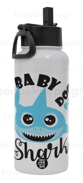 Baby Shark (boy), Metal mug thermo White with Straw and Spout Lid (Stainless steel), double wall, 950ml