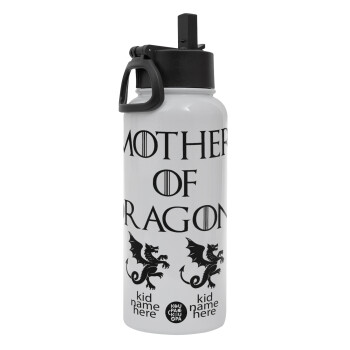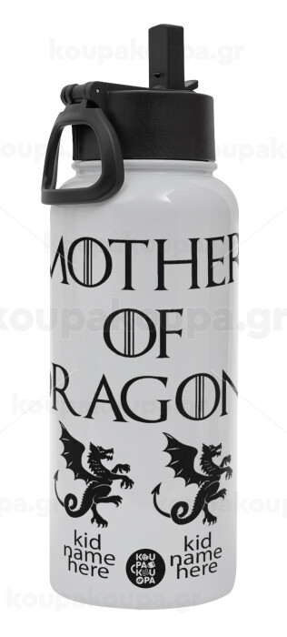GOT, Mother of Dragons (με ονόματα παιδικά), Metal mug thermo White with Straw and Spout Lid (Stainless steel), double wall, 950ml