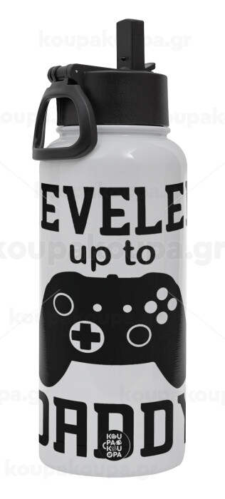 Leveled to Daddy, Metal mug thermo White with Straw and Spout Lid (Stainless steel), double wall, 950ml