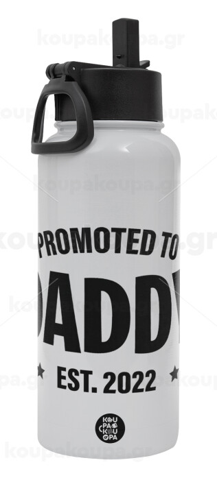 Promoted to Daddy, Metal mug thermo White with Straw and Spout Lid (Stainless steel), double wall, 950ml