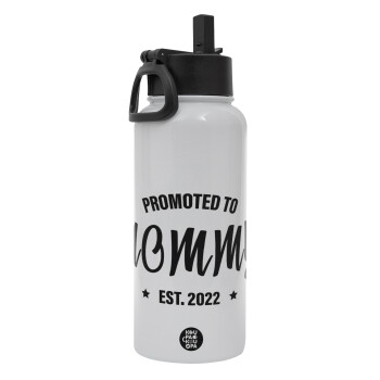 Promoted to Mommy, Metal mug thermo White with Straw and Spout Lid (Stainless steel), double wall, 950ml