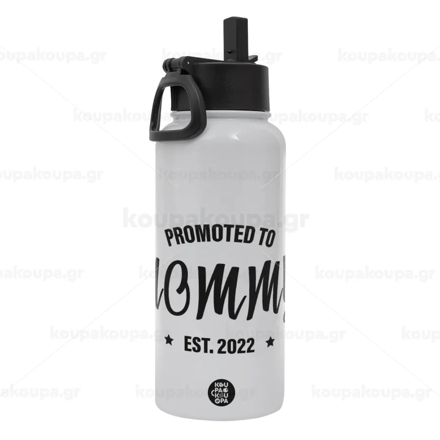 Promoted to Mommy, Metal mug thermo White with Straw and Spout Lid (Stainless steel), double wall, 950ml