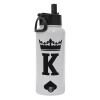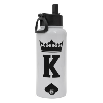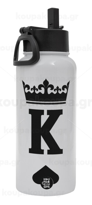 King, Metal mug thermo White with Straw and Spout Lid (Stainless steel), double wall, 950ml